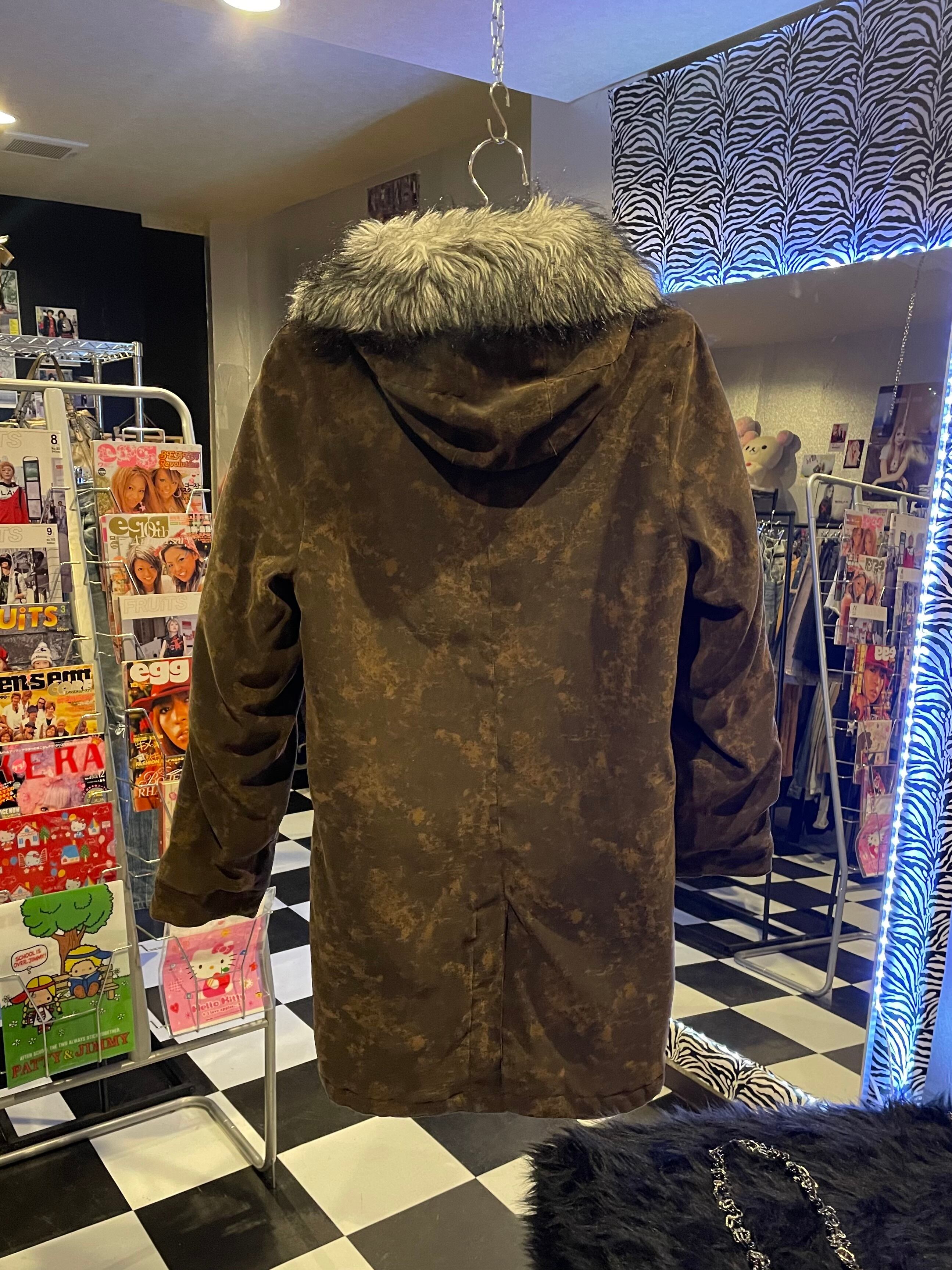 vintage muddy brown fur hood mods coat vkei oni-kei military gothic outer