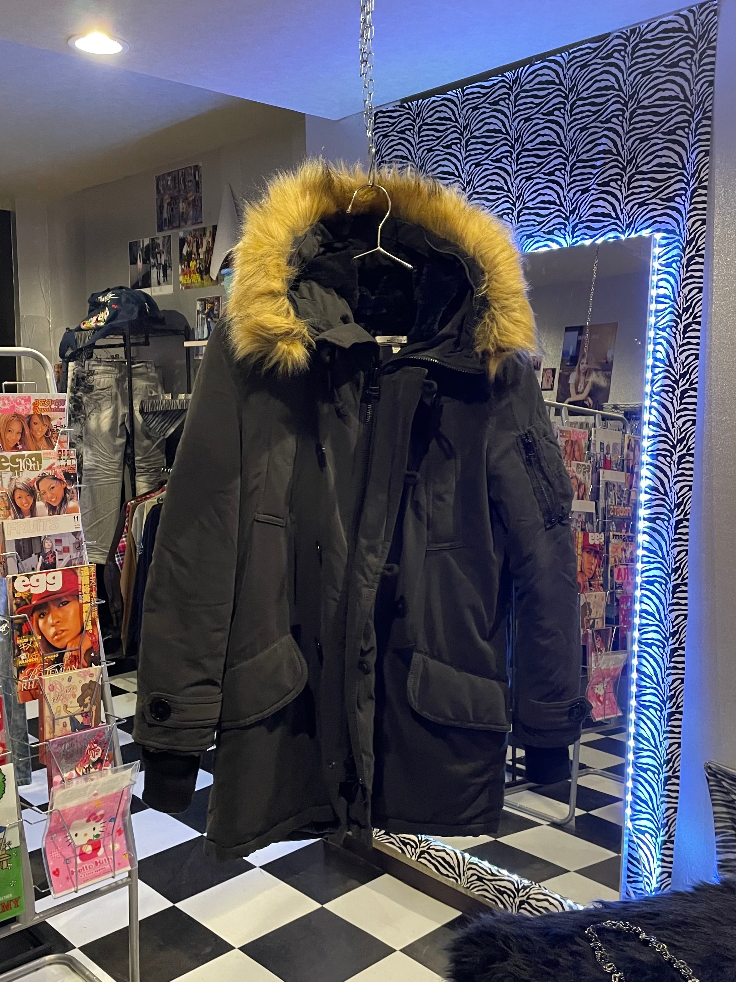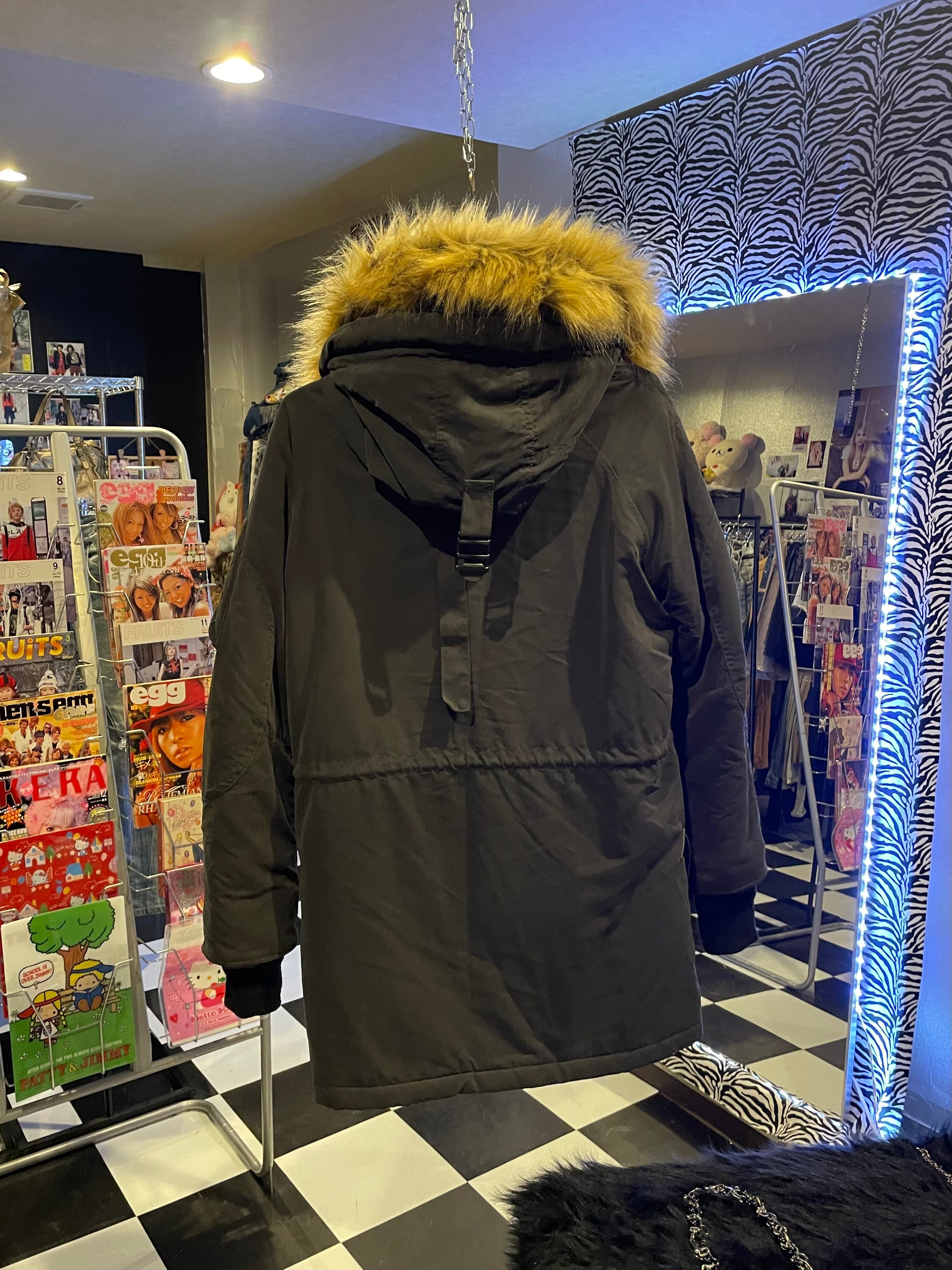 black fur hood down mods coat vkei oni-kei military street outer