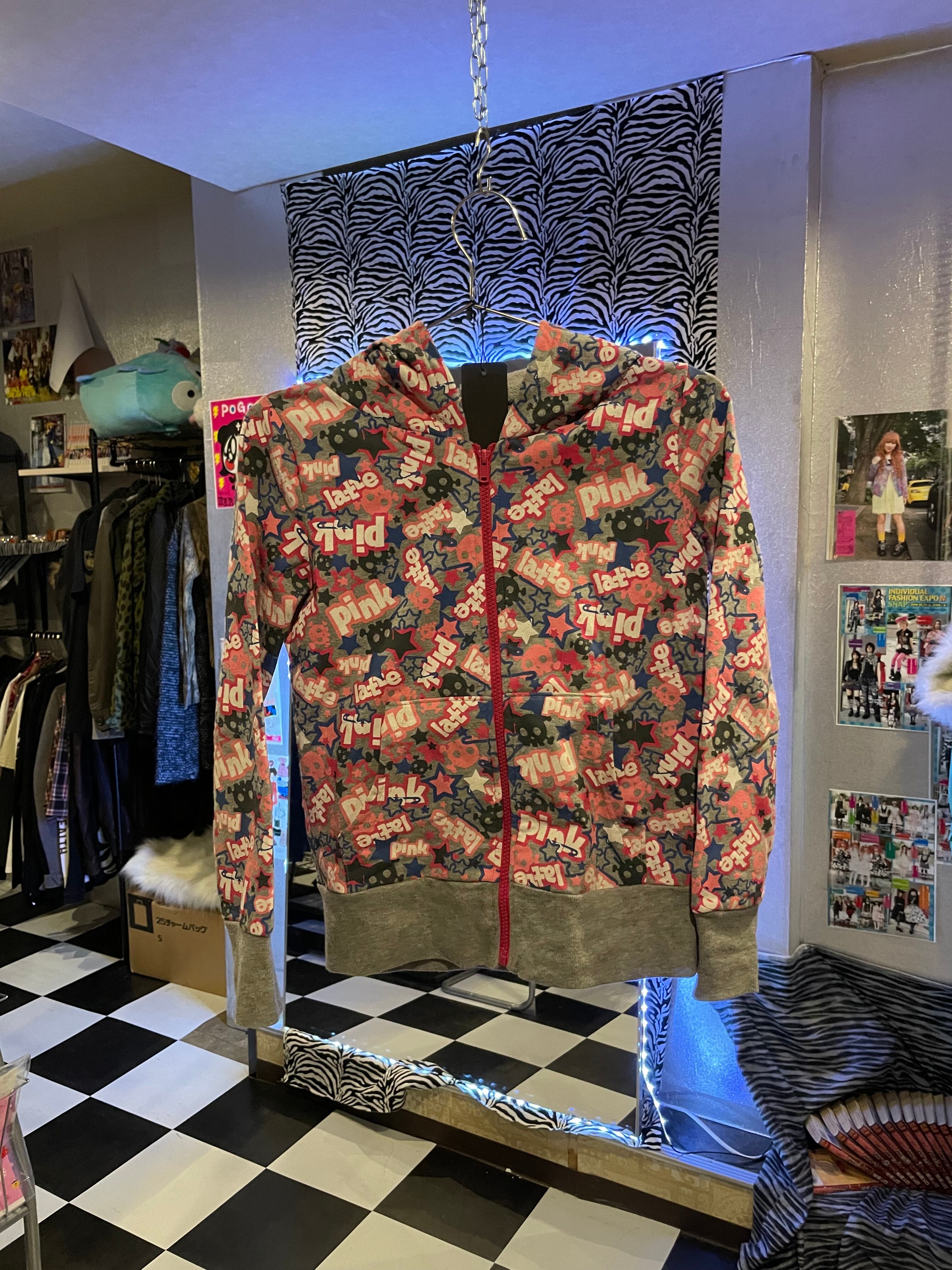 pink latte all print zip hoodie