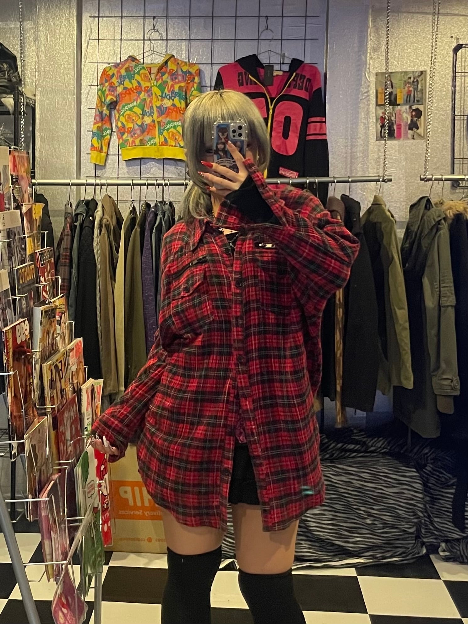 dolman sleeve check pattern shirt