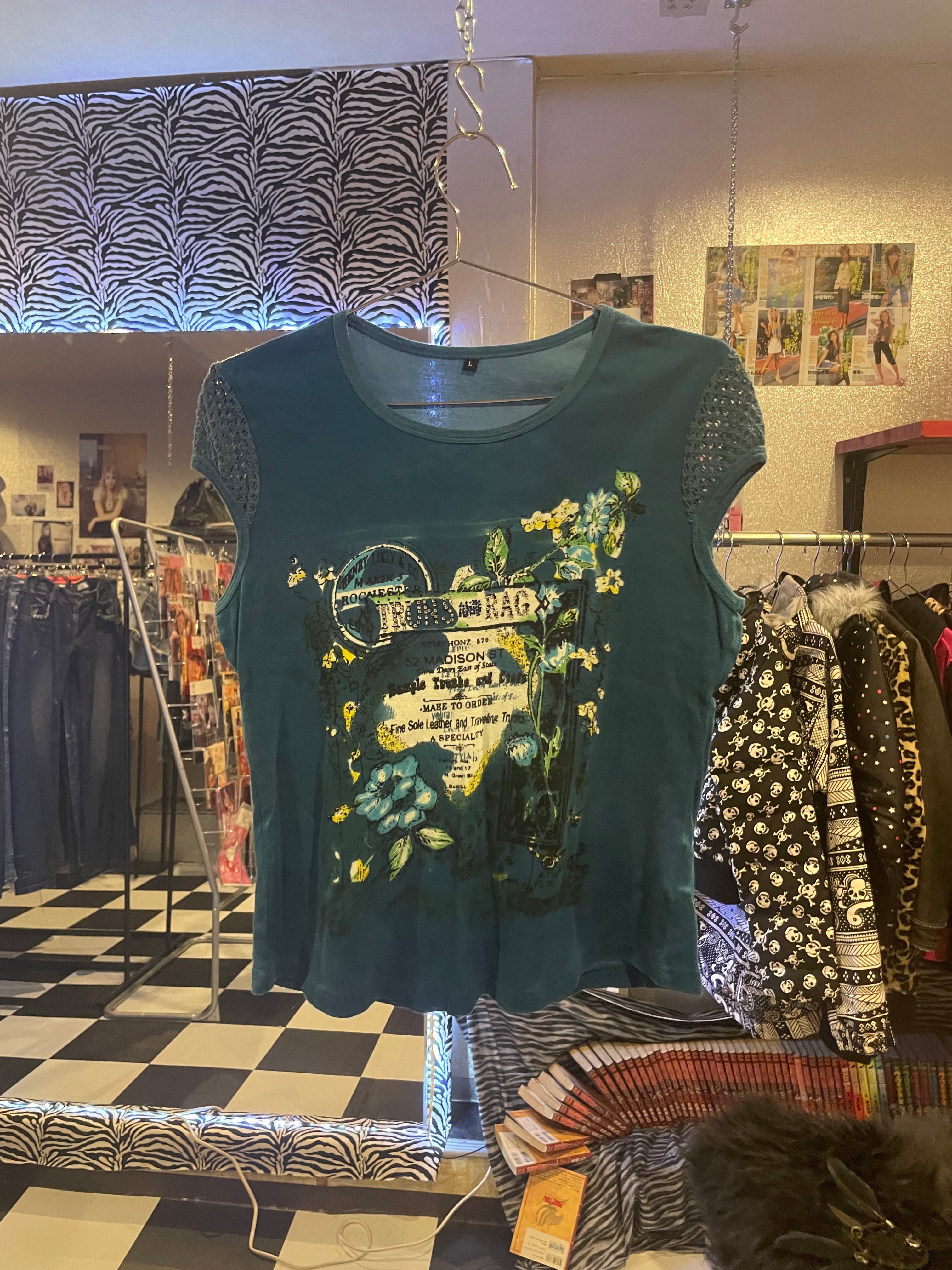 flower blue mesh sleeve tee