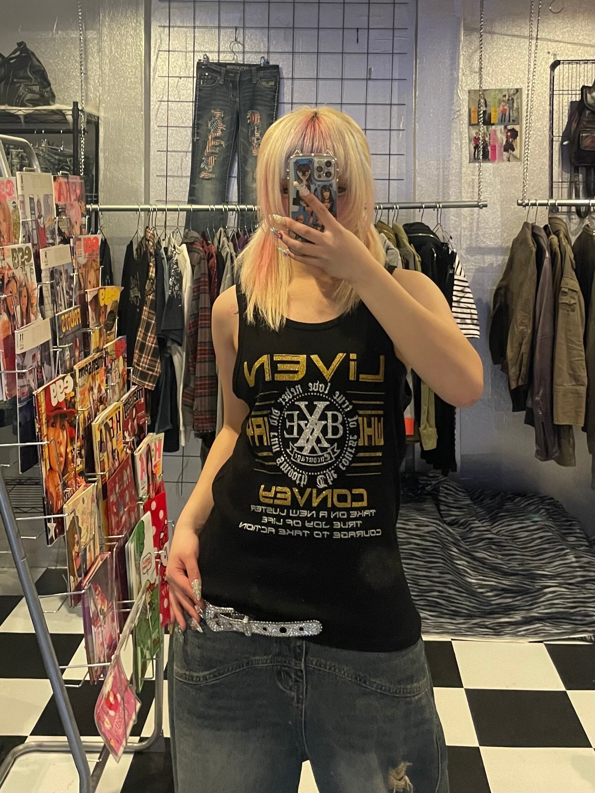 gal gold glitter tank top